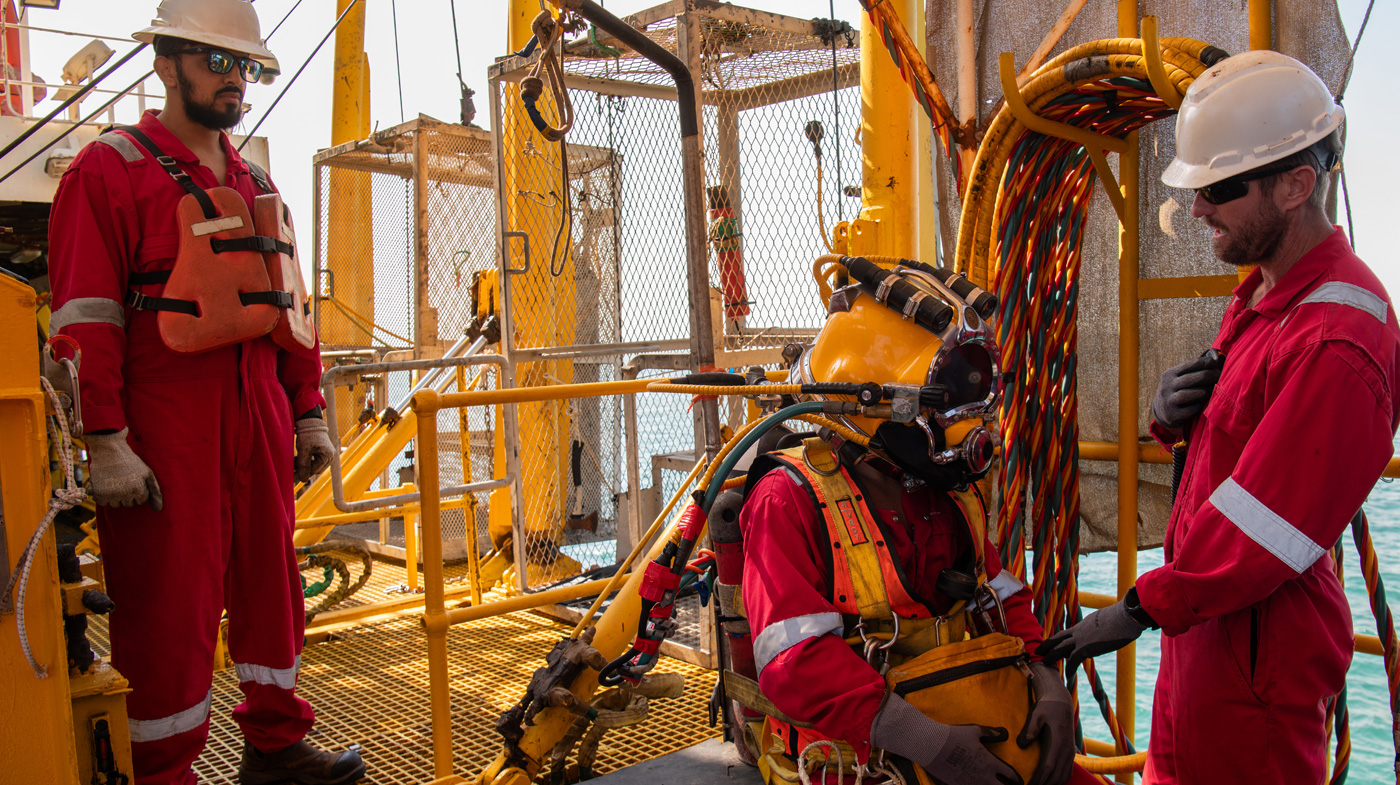 - Aramco’s divers play an important role in maintaining our offshore assets