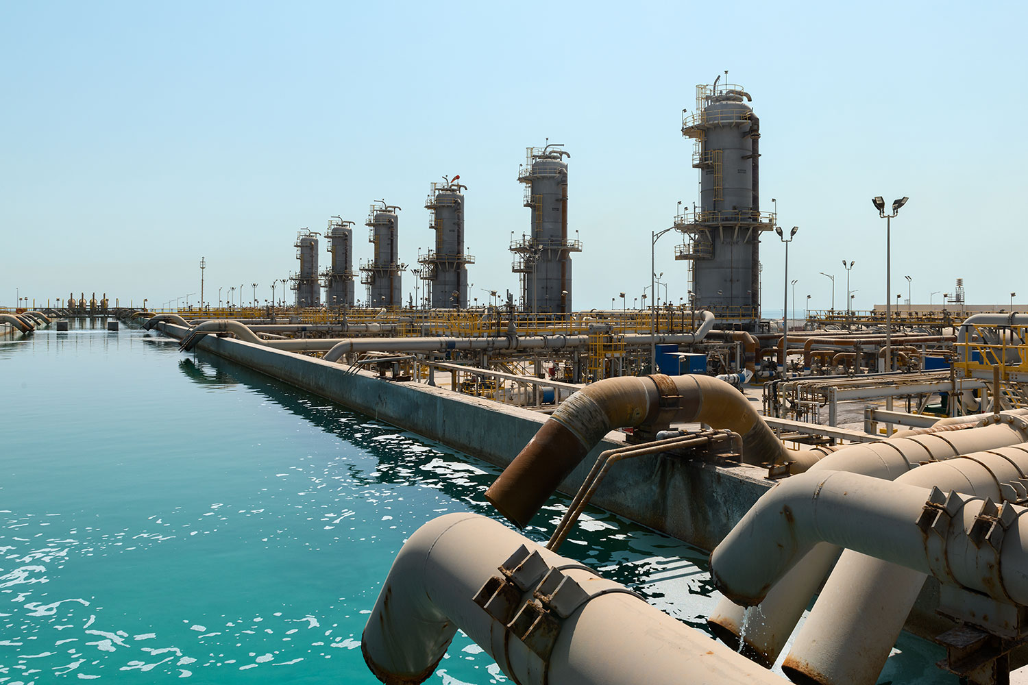 يعد معمل مياه البحر في القريّة في الخليج العربي أحد أكبر المعامل من نوعه على مستوى العالم، حيث تمتد شبكة مرافقه الواسعة عبر حقول الشركة، حيث تتم معالجة مياه البحر في المعمل ومن ثم نقلها إلى العديد من الحقول لاستخدامها في الحفاظ على ضغط الآبار، وهو ما يسهم في المحافظة على ثروة المياه الجوفية والمساعدة في حماية الحياة البحرية. كما أن الطاقة الاستيعابية القصوى السنوية لتوفير المياه الجوفية تعادل الطلب السنوي على المياه الجوفية في القطاع الصناعي بأكمله في المملكة العربية السعودية.