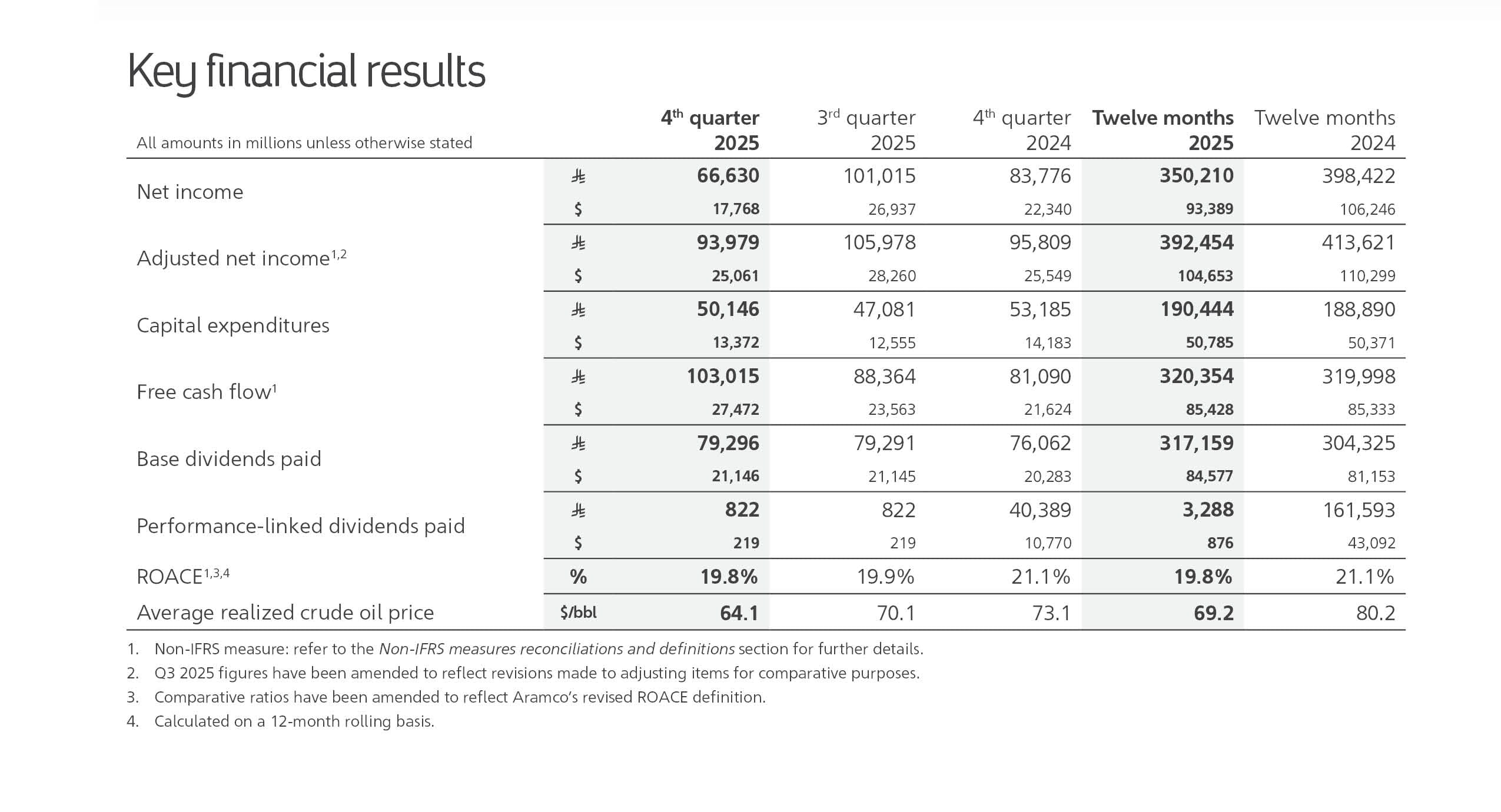 “Aramco delivered robust growth and strong cash flows in 2025, reinforcing confidence in our strategy. Our disciplined capital allocation, combined with our lower-cost, adaptable, and highly-reliable operations, drove strong financial performance in a year marked by price volatility. This enabled a 3.5% increase to our base dividend, reinforcing our focus on delivering sustainable and progressive shareholder returns.