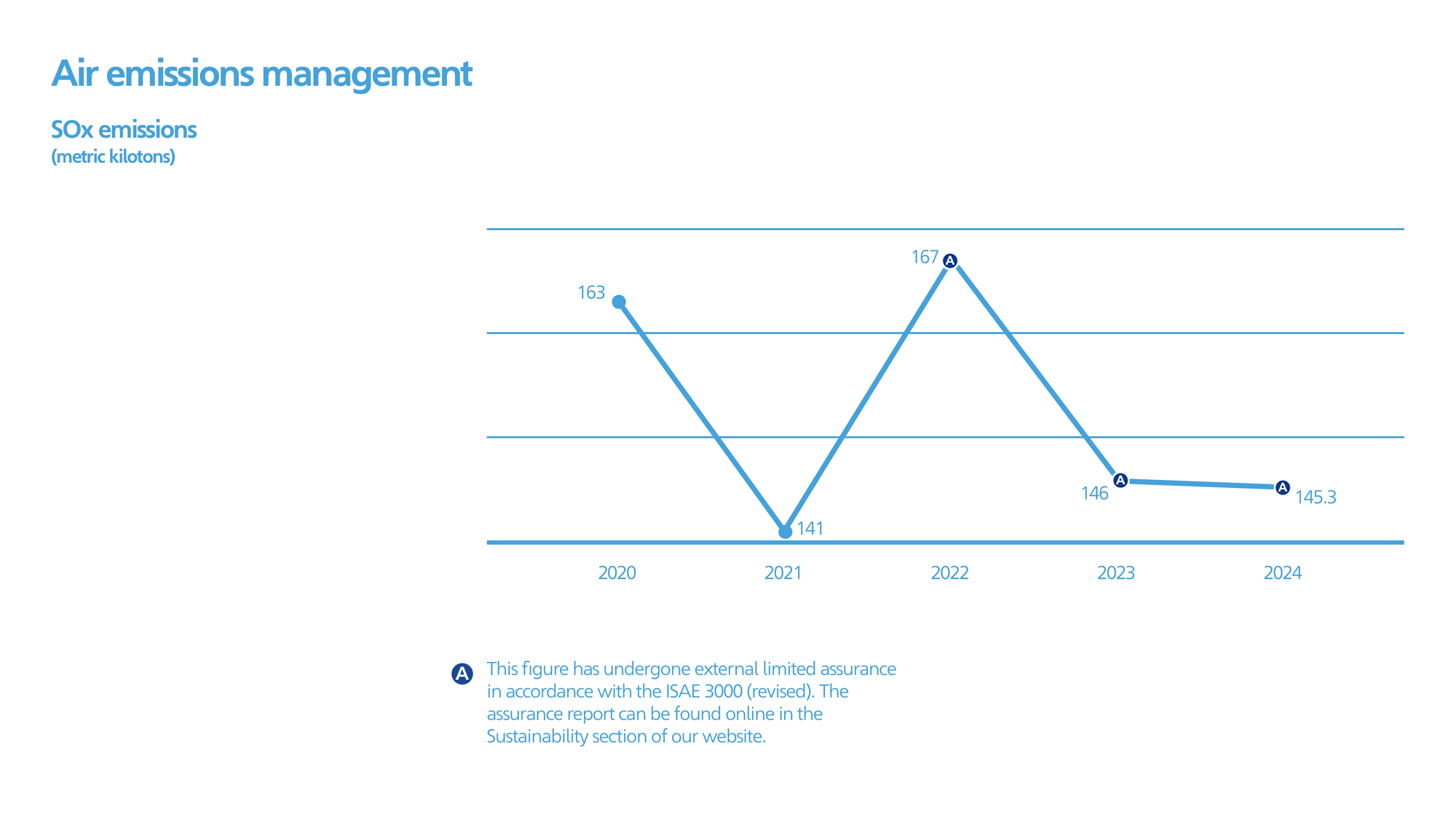 In 2024, Aramco’s sulfur oxides (SOx) emissions were 145.3 metric kilotons — a slight decrease compared to 2023, due to improved sulfur recovery and fuel efficiency.